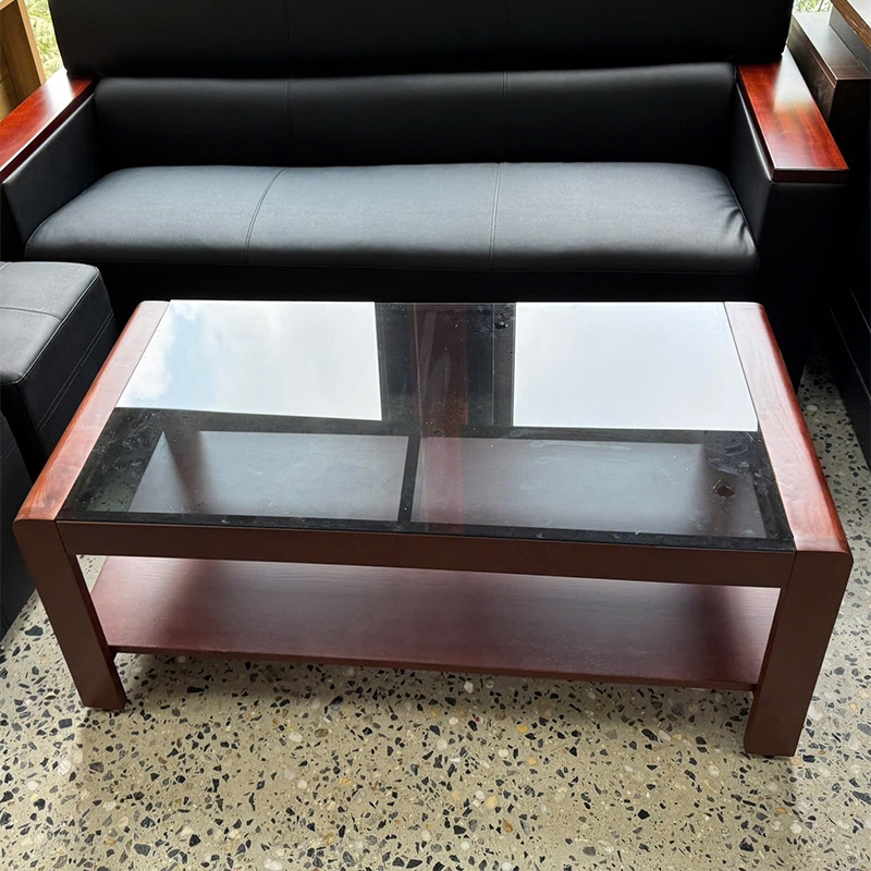 Bàn sofa văn phòng khung gỗ tự nhiên tần bì, mặt kính cường lực cao cấp