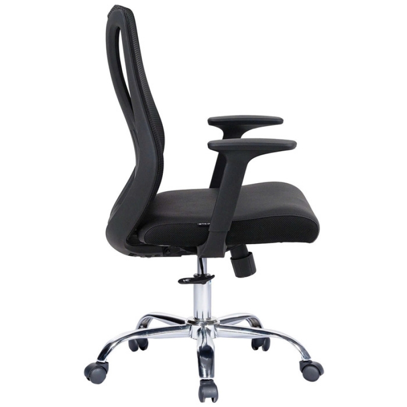 Tay ghế cách điệu hình chữ T độc đáo. Hỗ trợ để tay thoải mái, với dáng vừa tầm sẽ giảm áp lực lên vùng cổ tay, không gây vướng trong lúc làm việc. Sự vững chãi sẽ nằm ở chân ghế, khi có cấu tạo 5 cánh hoa kèm theo bánh xe giúp di chuyển thuận lợi, đến mọi vị trí trong không gian làm việc. Cơ cấu xoay toàn phần nhờ vào piston, những lúc cần trao đổi với đồng nghiệp thì chỉ cần một cái xoay nhẹ.