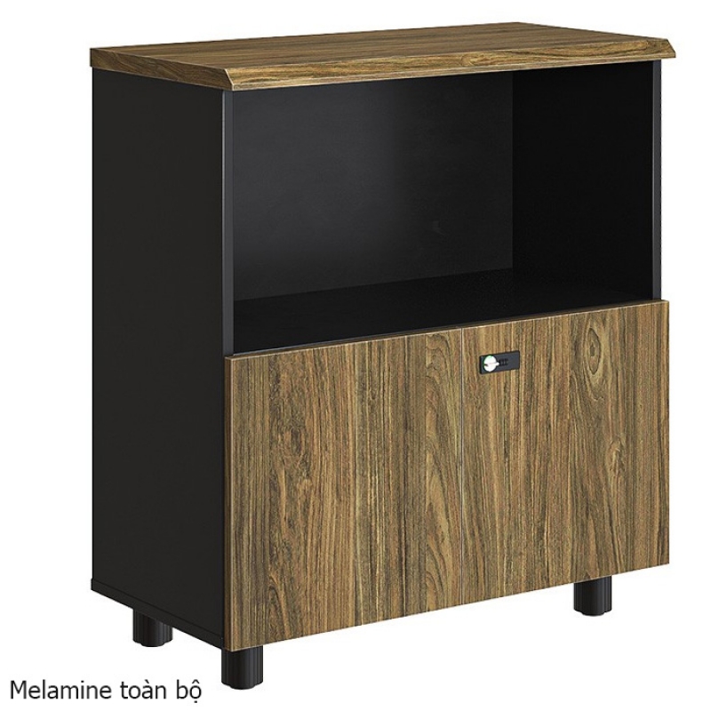 Kiểu dáng Tủ thấp đựng hồ sơ có chiều cao 880mm, chất liệu Laminate kết hợp melamine, gồm 2 cánh lửng, cánh tủ có khóa số.