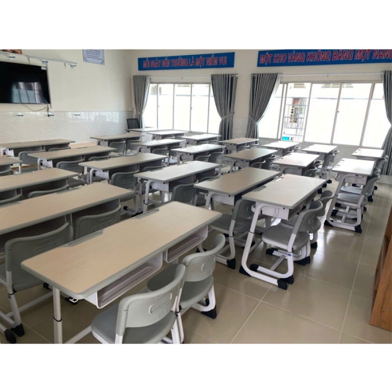 Bàn ghế học sinh 2 chỗ ngồi SET02 mang hơi thở hiện đại là một trong những mẫu sản phẩm nội thất được ưa chuộng trong các trường học và không gian học tập gia đình. Thiết kế điều chỉnh cao thấp thông minh chất liệu cao cấp và tính năng ưu việt, bộ bàn ghế này mang lại cho học sinh một môi trường học tập thoải mái, an toàn và giúp cải thiện tư thế ngồi.