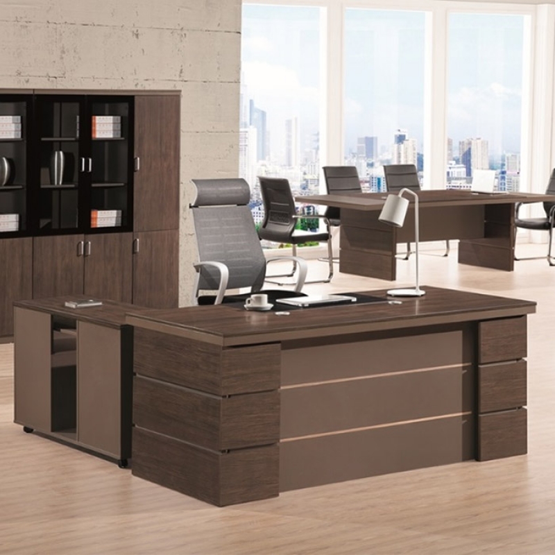 Bàn làm việc dành cho trưởng phòng có tủ phụ ghép thành chữ L với chất liệu chính là MFC phủ melamine loại cao cấp có khả năng chống thấm
