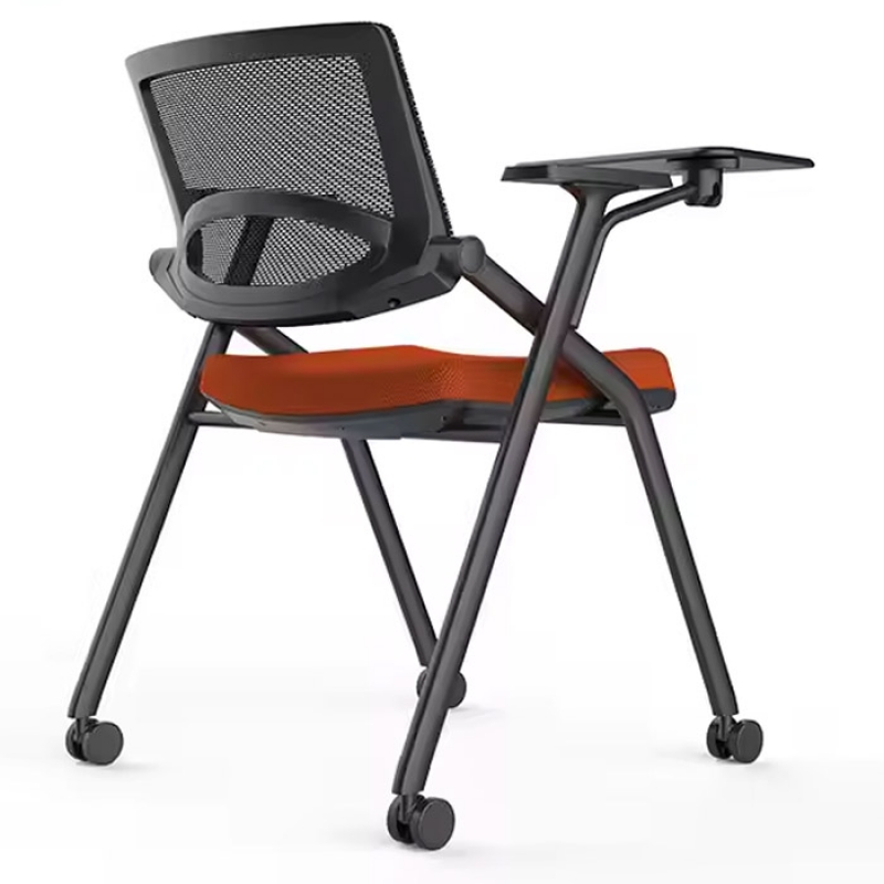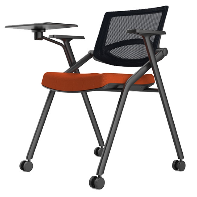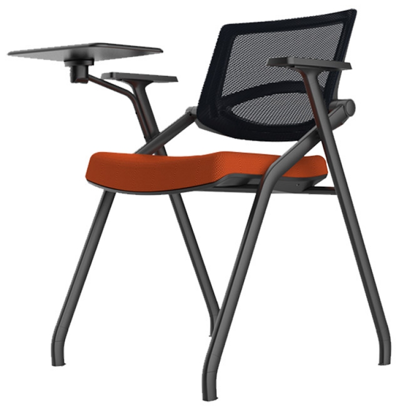 Ghế liền bàn gấp gọn có khung thép sơn tĩnh điện màu đen sang trọng, tựa lưng lưới thoáng mát, đệm mút bọc vải êm ái. Tay vịn có thể trượt trước và sau, linh hoạt đáp ứng mọi tư thế ngồi. Thường sử dụng cho các lớp học anh ngữ hoặc hội trường hoặc không gian training