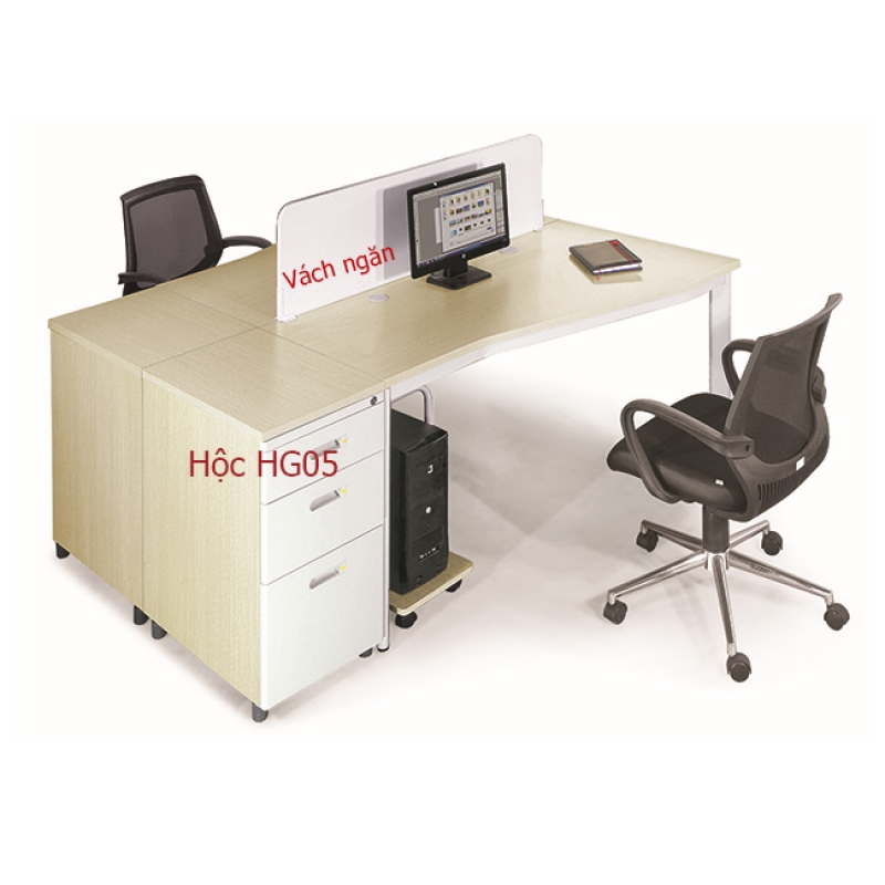 - Có thể trang bị thêm tích hợp hộc HG05 gỗ cao bằng mặt bàn gồm 3 ngăn kéo tiện dụng. Mỗi người dùng đều có khu vực lưu trữ tài liệu vật dụng cá nhân riêng. Từ đó mang đến sự gọn gàng tiện lợi trong quá trình sử dụng.