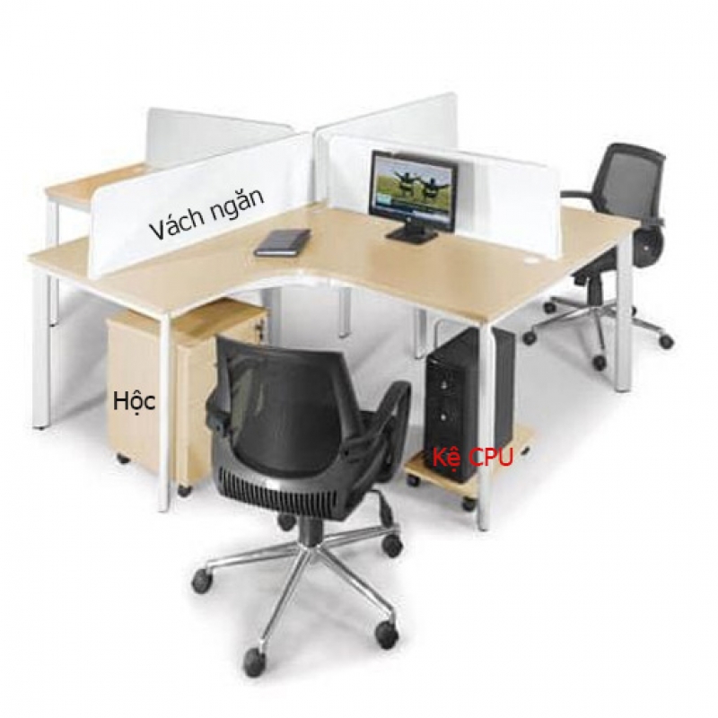 Đây là mẫu ghép cụm dùng đồng thời cho 4 người trong cùng một khu vực liền kề và đối diện nhau. Liền khối giúp doanh nghiệp giải quyết bài toán về diện tích mà không tốn quá nhiều chi phí cho việc đầu tư nội thất.