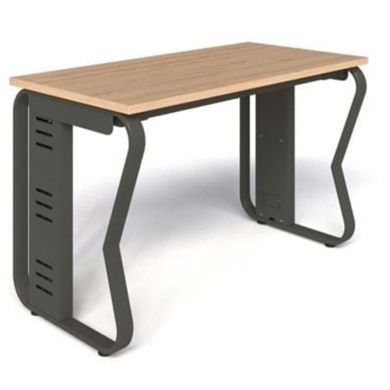 Bàn nhân viên 1903.1B12 rộng 1.2m, 1903.1B14 rộng 1.4m. Chân sắt hộp 50x16 uốn cong kết hợp thanh giằng 25x50. Phần sắt sơn màu đen. Mặt bàn gỗ MFC dày 25mm |