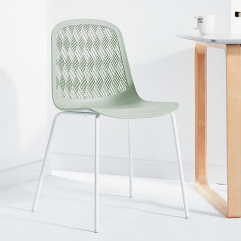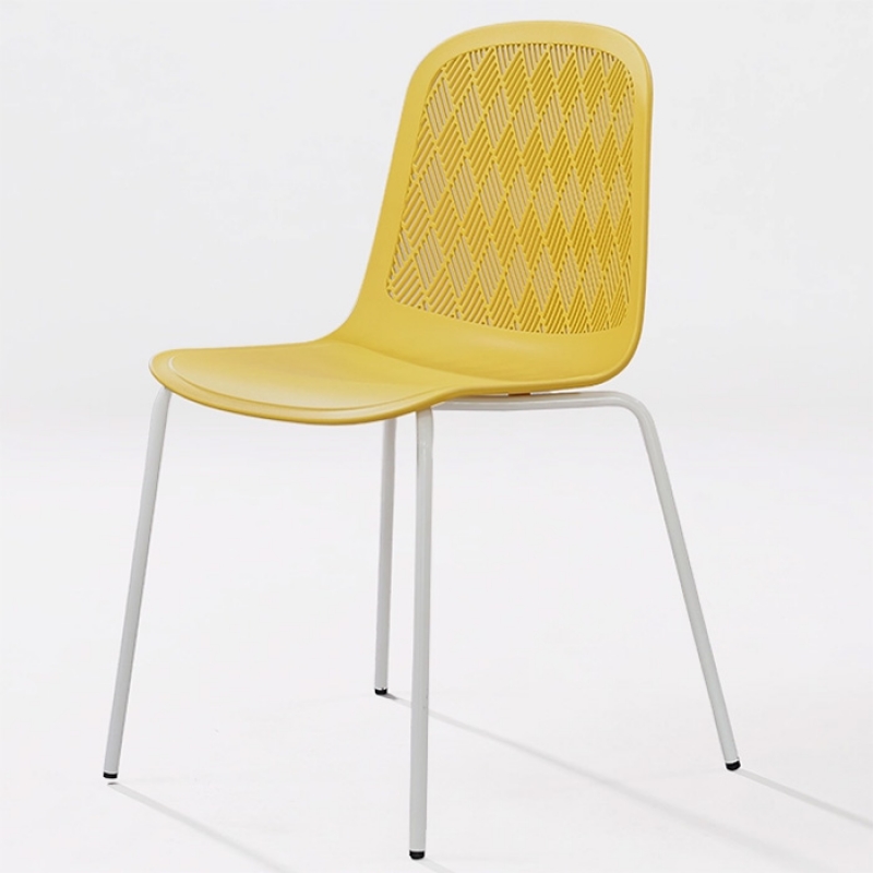 Ghế ống thép thiết kế hiện đại với phần lưng và ngồi được đục lỗ hình học tạo sự thoáng mát. Khung chân thon gọn làm từ thép sơn tĩnh điện màu trắng, mang lại vẻ thanh thoát. Màu sắc tươi sáng (xanh lá, hồng pastel, vàng) giúp ghế nổi bật và phù hợp với không gian trẻ trung. |