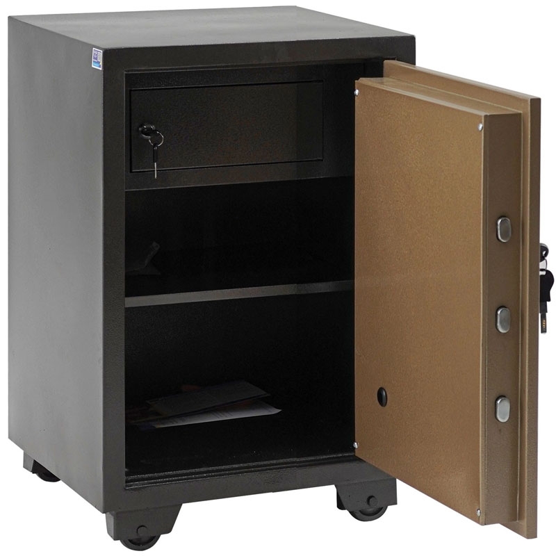 Bên cạnh khóa điện tử đòi hỏi thêm khóa chìa, cả hai mã số và chìa khóa mới có thể mở két, ngăn chặn mở trái phép hiệu quả.