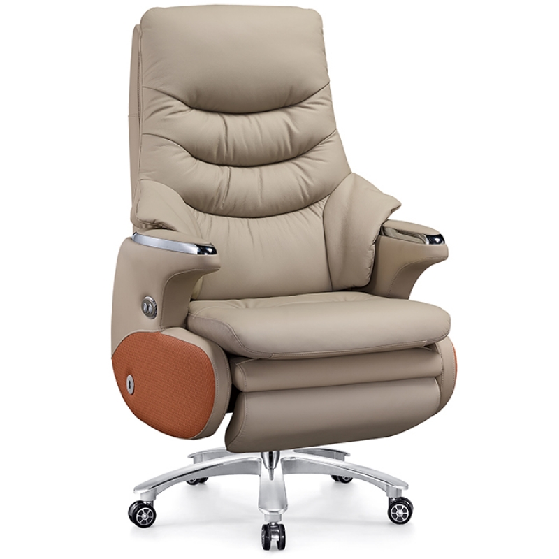 Nâng tầm lối sống đẳng cấp cho Chủ Tịch doanh nghiệp cùng mẫu ghế văn phòng da thật có thiết kế thông minh điều khiển ngả lưng + massage bằng giọng nói. Ngoại hình sang trọng và chức năng mạnh mẽ chuẩn công thái học giúp các vị lãnh đạo trải nghiệm tận hưởng sự thoải mái như khoang hạng nhất trên máy bay ngay tại nơi làm việc.