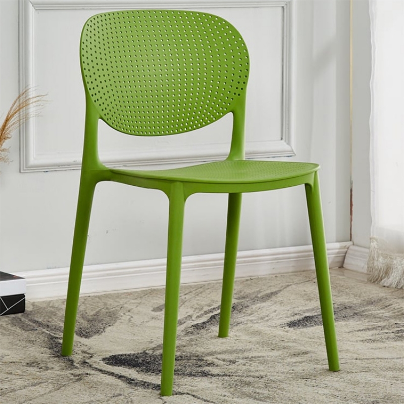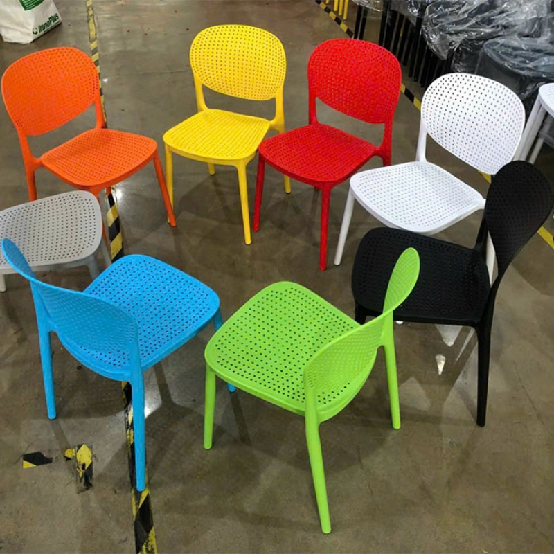 Kiểu dáng Ghế nhựa PP đột lỗ thoáng khí thiết kế tinh giản với đường nét mềm mại ôm lưng nhẹ thường được sử dụng cho quán cafe, nhà hàng hay không gian phòng chờ công cộng