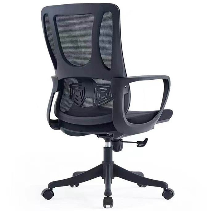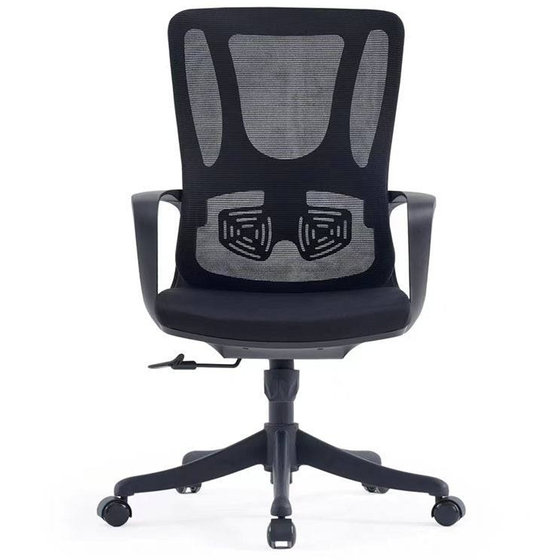 Ghế làm việc văn phòng dành cho cấp bậc nhân viên lưng trung căng vải lưới thoáng khí, thiết kế cong theo đốt sống hỗ trợ cột sống ngồi lâu không gây mỏi vai gáy. Đệm mút đúc dày bọc vải nỉ co giãn 4 chiều êm ái hạn chế xẹp lún. Tay vịn thiết kế bo cong liền thân chắc chắn khi sử dụng. Khung chân nhựa kiểu dáng thời trang năng động. Ghế trang bị tính năng nâng - hạ - ngả mâm 135 độ giúp thư giãn ngay tại nơi làm việc thông minh. Bánh xe di chuyển linh hoạt không gây tiếng ồn.